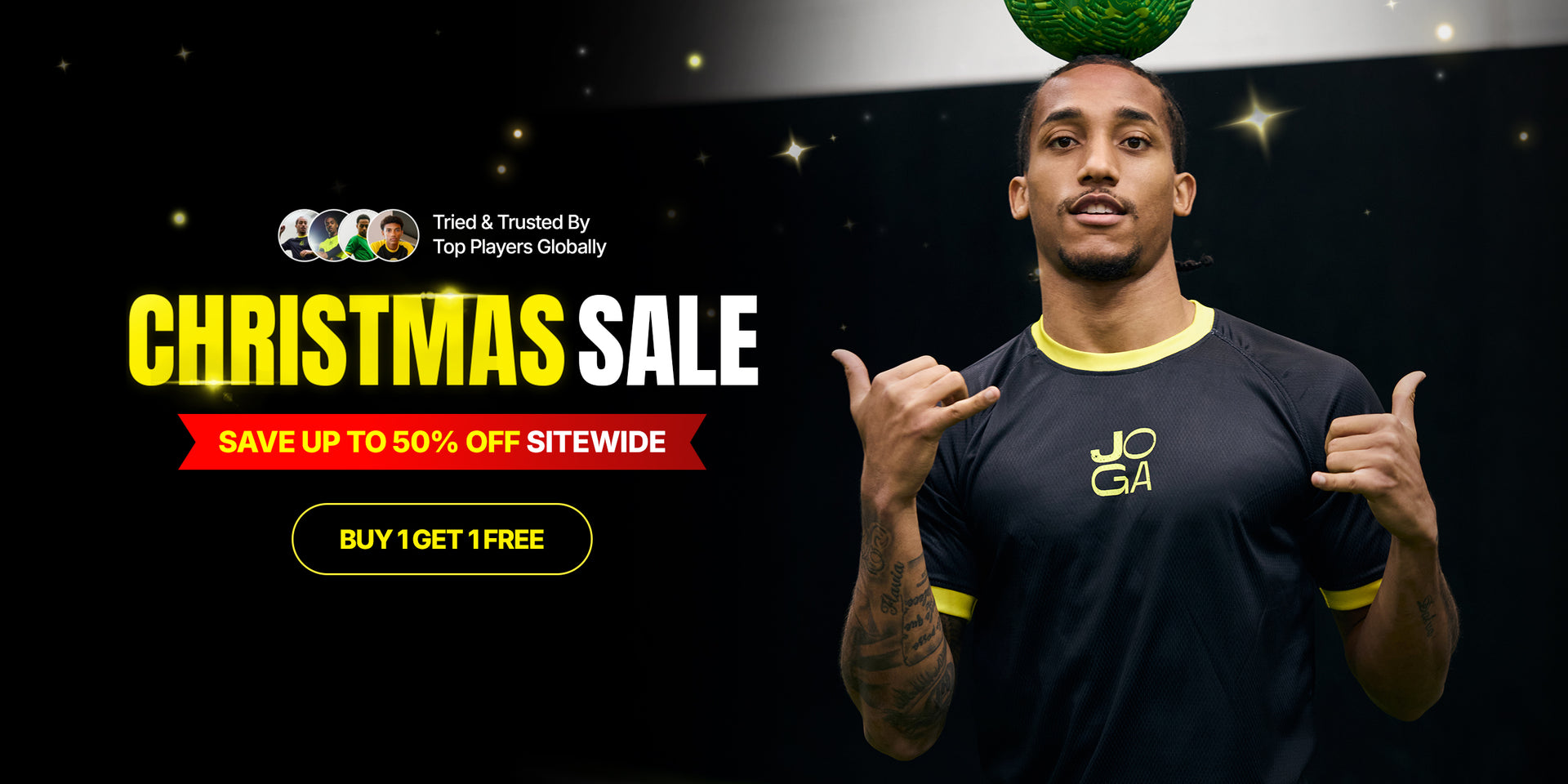 JOGA, de ultieme uitrusting die elke voetballer nodig heeft om het spel naar een hoger niveau te tillen. Van amateur tot professioneel niveau, JOGA wordt vertrouwd door de besten...”
